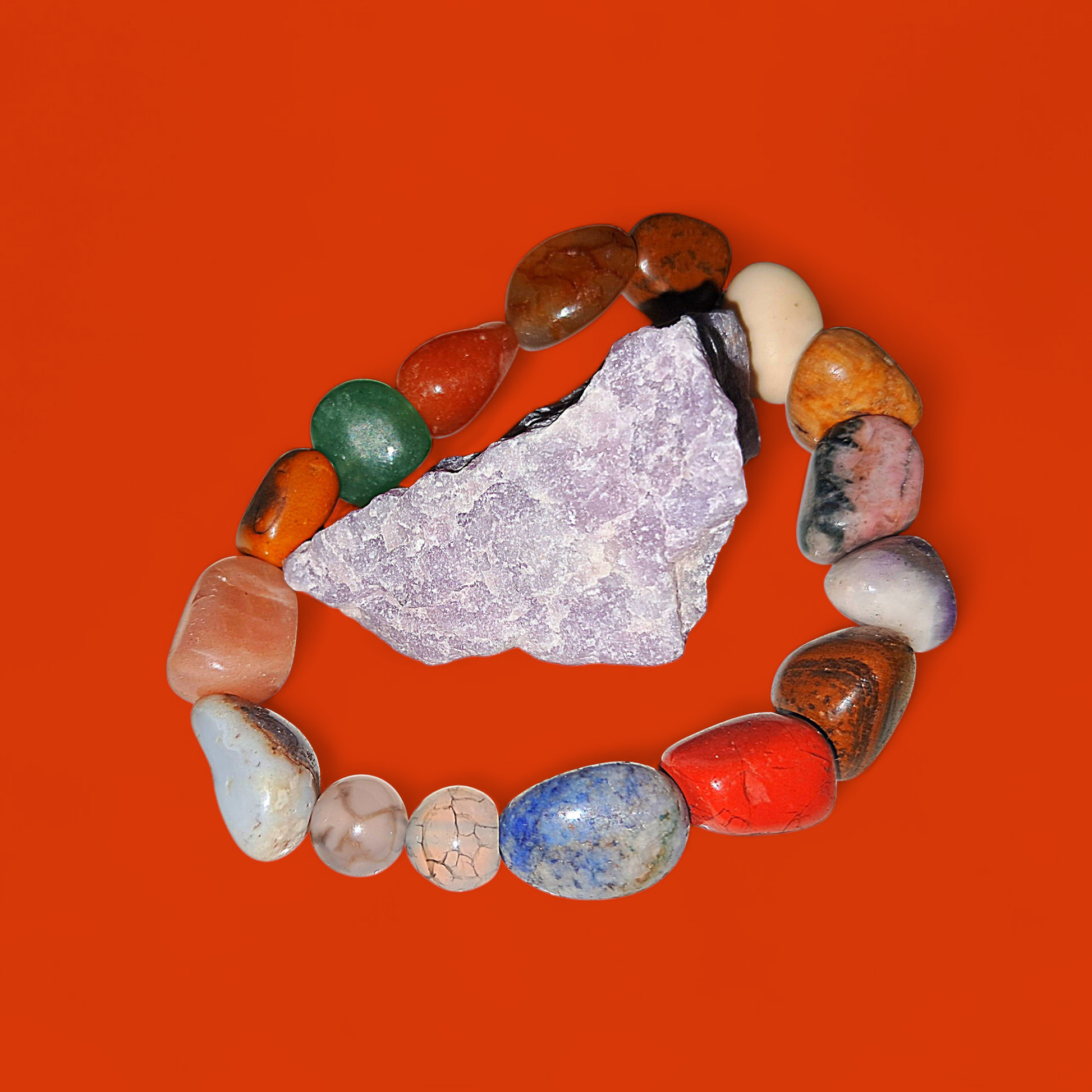 Chakras Of Peace, Power & Strength Ritual Snake Stones & Multi Crystal Bracelet