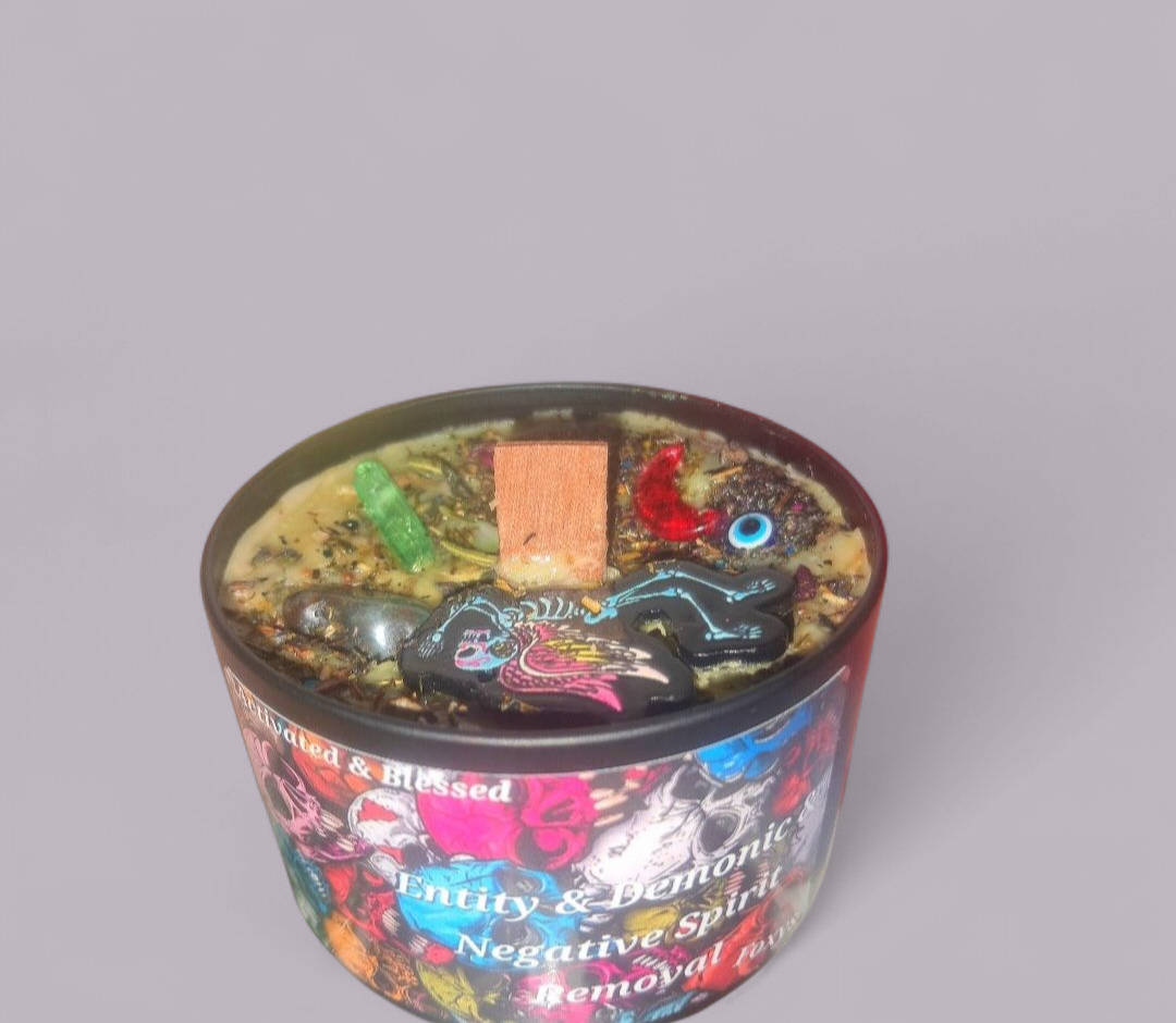 In all the ways you wish, want & desire & pray to have the negative entity or spirit healed that has been or was attached to you or another / areas of your life whatever it is latched onto that your experiencing & your ready to be freed fully from it this will rebuke & banish it permentally back to where it came from never to return off of all & any of the things on your mind this candle will be activated & Blessed & specially made just for you to have all that manifest for you ! & This will release any & all blocks or negative energys placed upon those areas for you & will even protect the energys you manifest being in effect if youve been feeling like its been a struggle to be able to it wont be anymore !